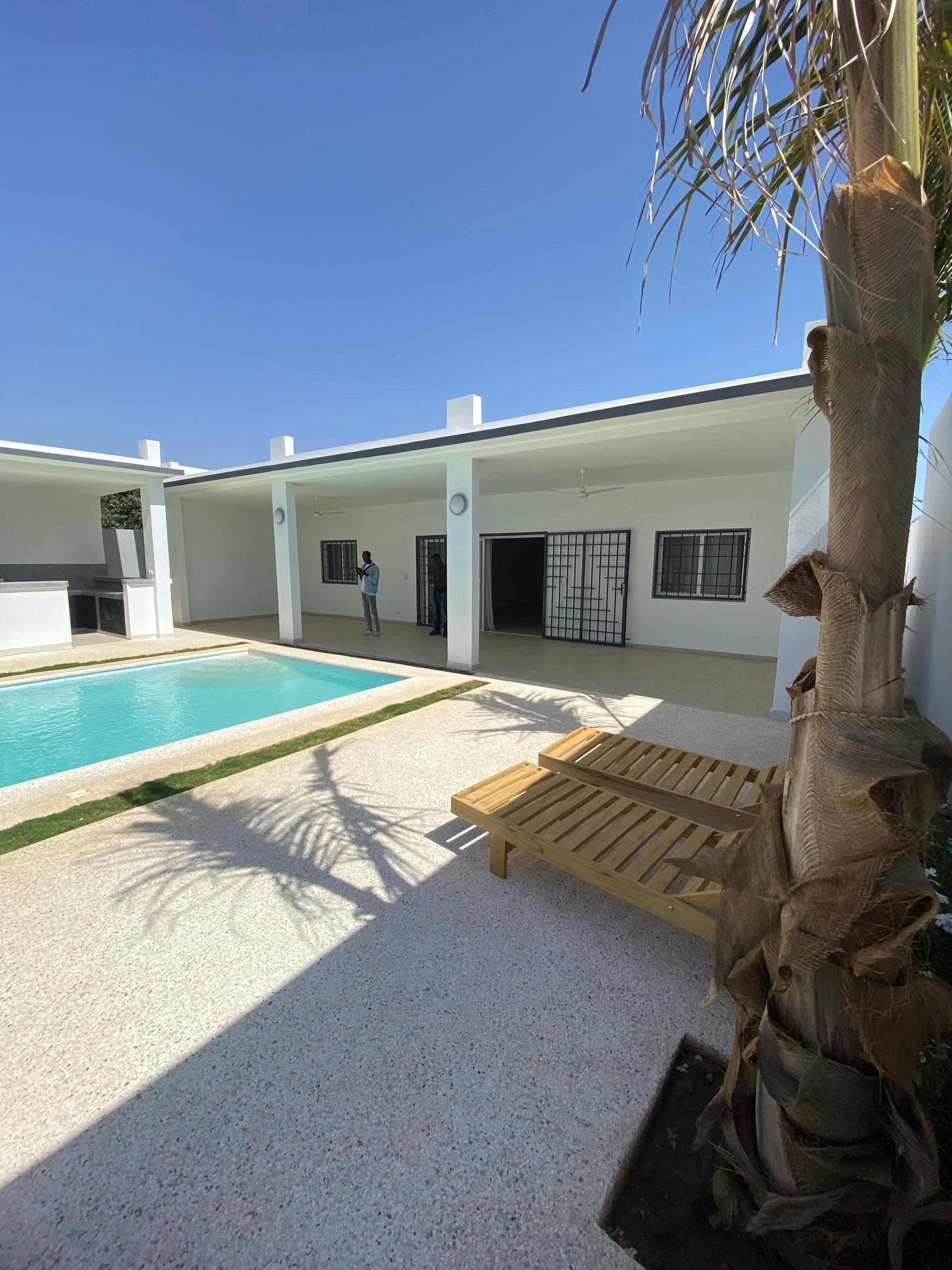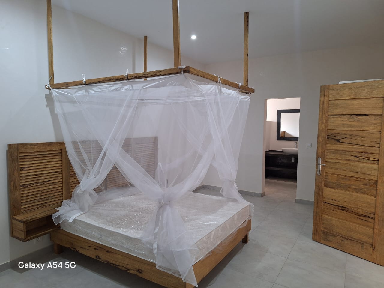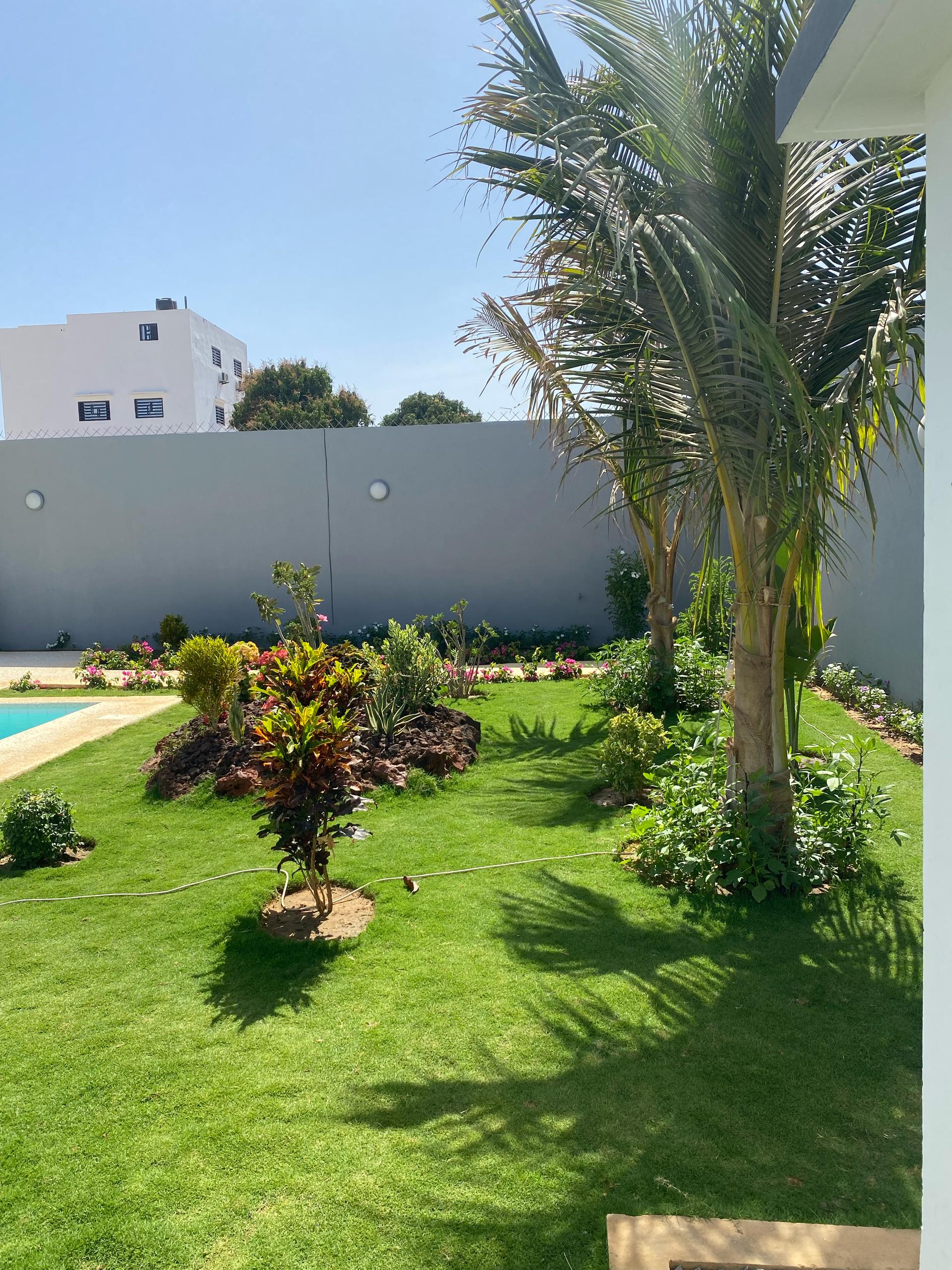 Ngaparou Villa de 600m² carrés de surfaces du terrains 3 chambres avec leurs salles de bains, salon, cuisine extérieure et intérieur, piscine, garage ouverte, prix 135 millions légèrement négociable papier délibération bail en cours