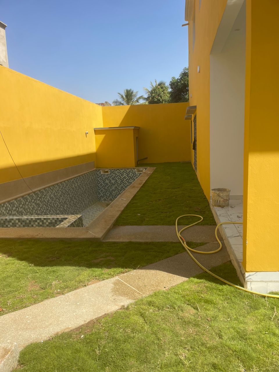 4 chambres SDB 2 grande salon 2 terrasse vue sur piscine toilette visiteurs cuisine américaine et cuisine sénégalais chambres gardien garage de 2 voitures