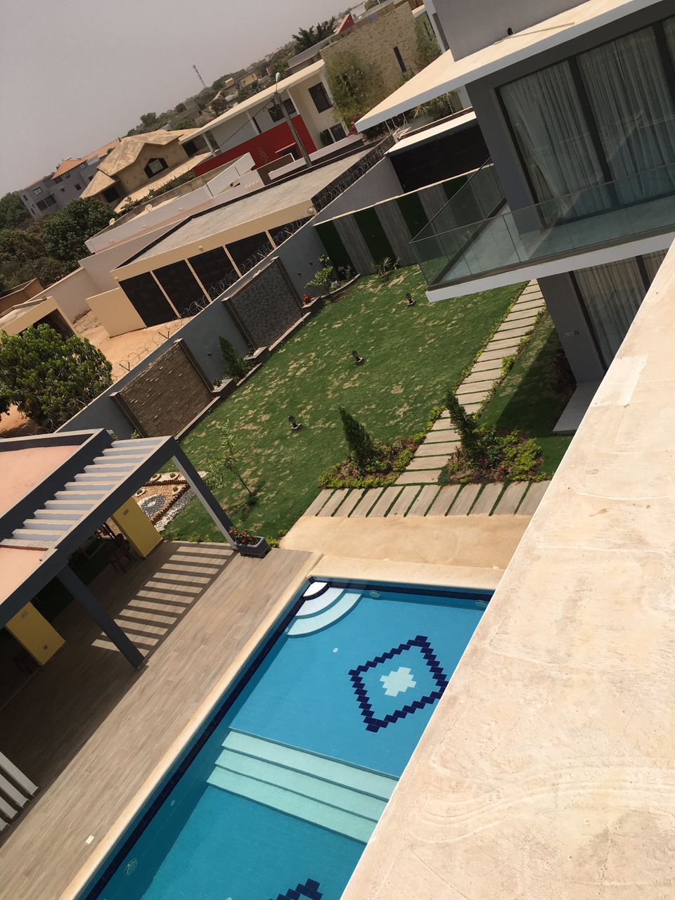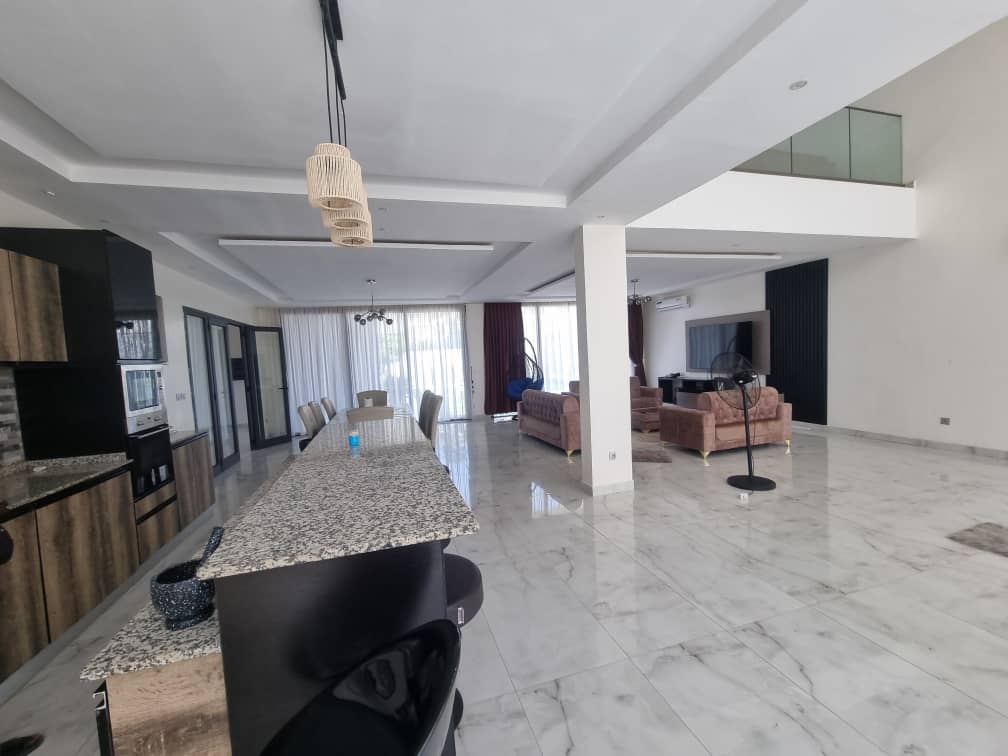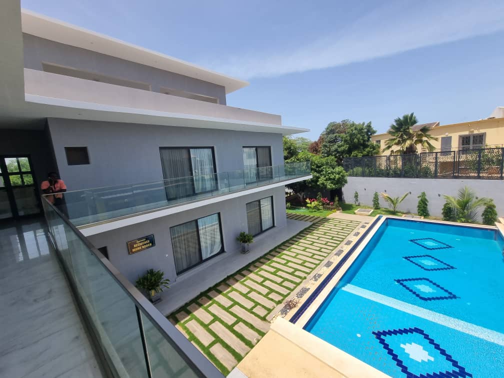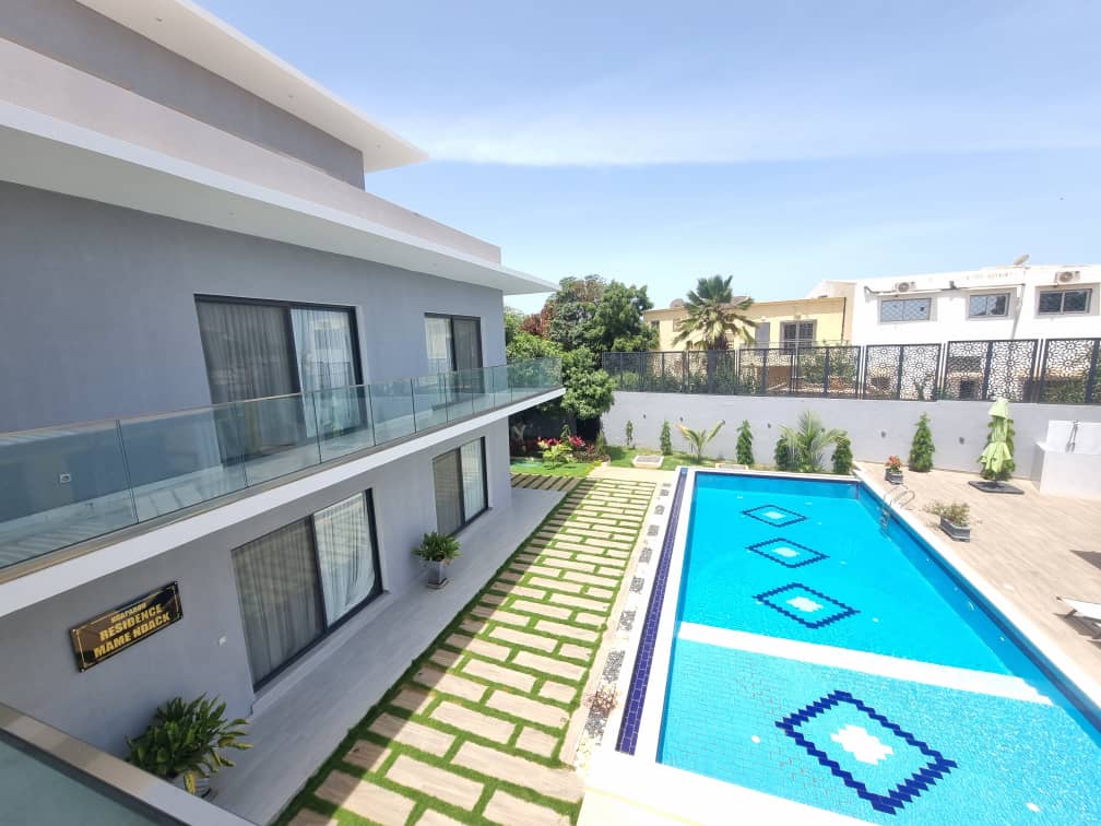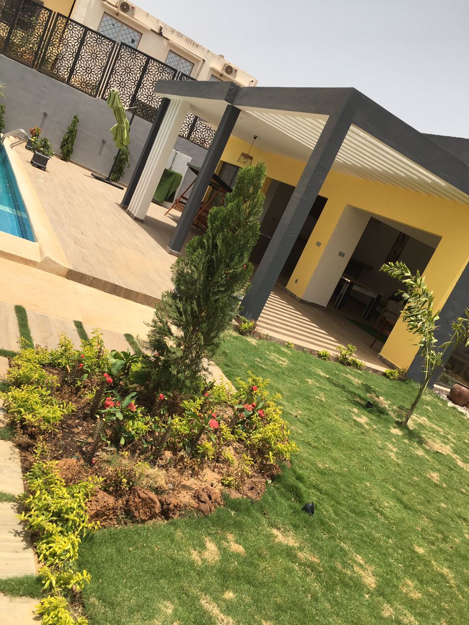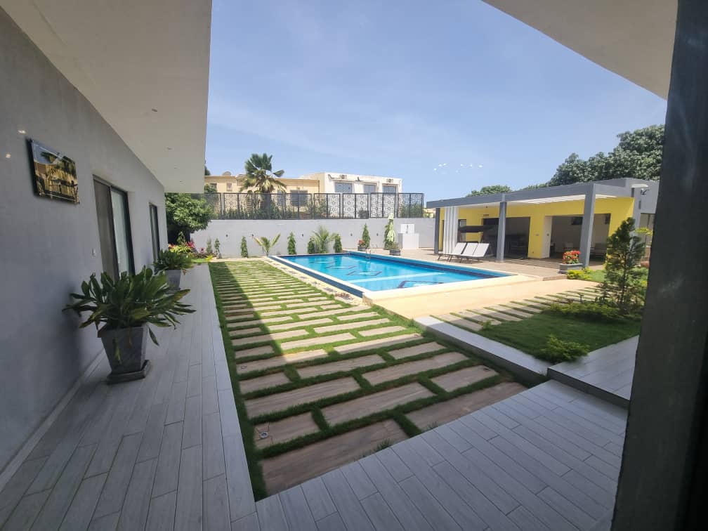 Somptueuse villa meublée et climatisée de 1600 m², située dans une zone résidentielle calme et accessible, proche de toutes commodités. Elle comprend 8 chambres avec salles de bain, 2 cuisines américaines, 2 terrasses, une piscine, un grand jardin, espace barbecue et cuisine extérieure.