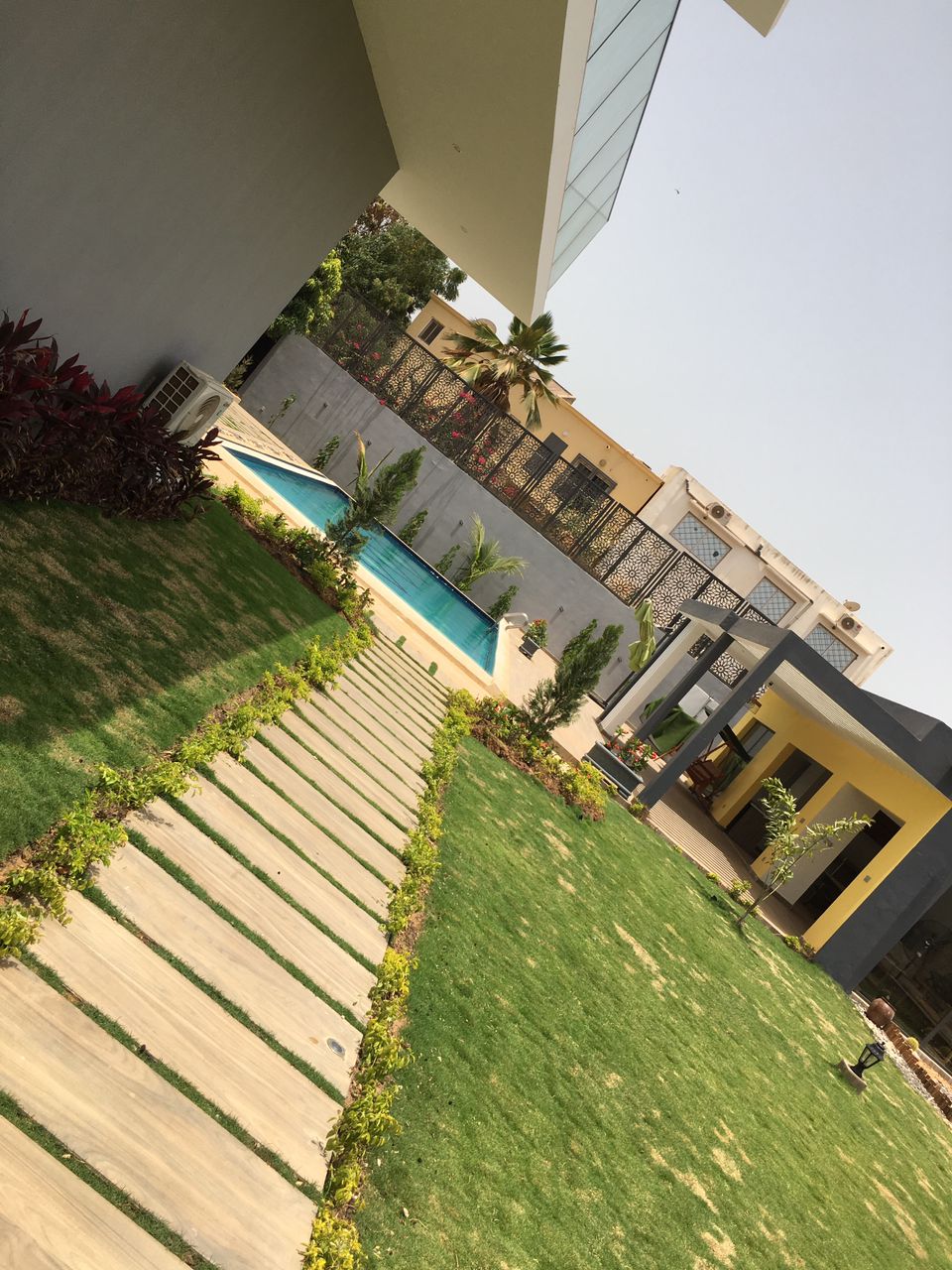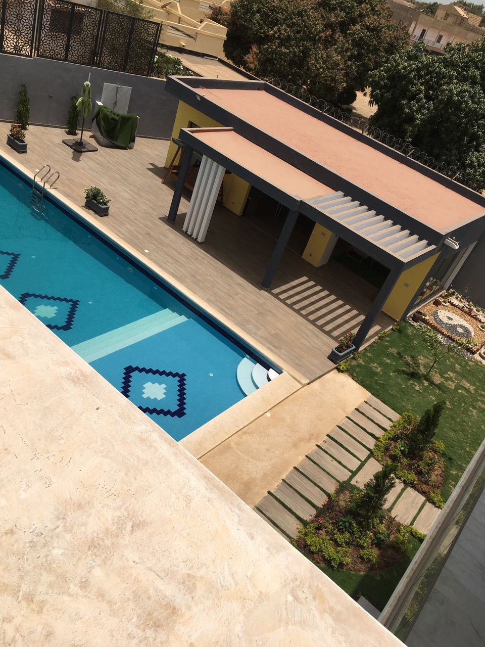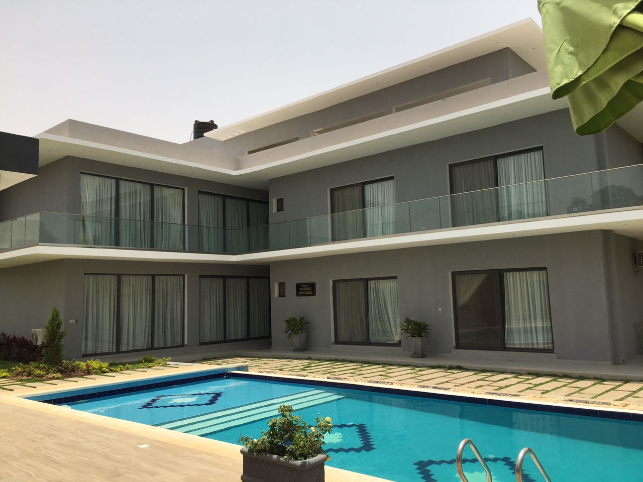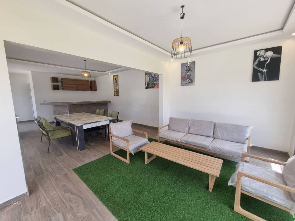 Somptueuse villa meublée et climatisée de 1600 m², située dans une zone résidentielle calme et accessible, proche de toutes commodités. Elle comprend 8 chambres avec salles de bain, 2 cuisines américaines, 2 terrasses, une piscine, un grand jardin, espace barbecue et cuisine extérieure.