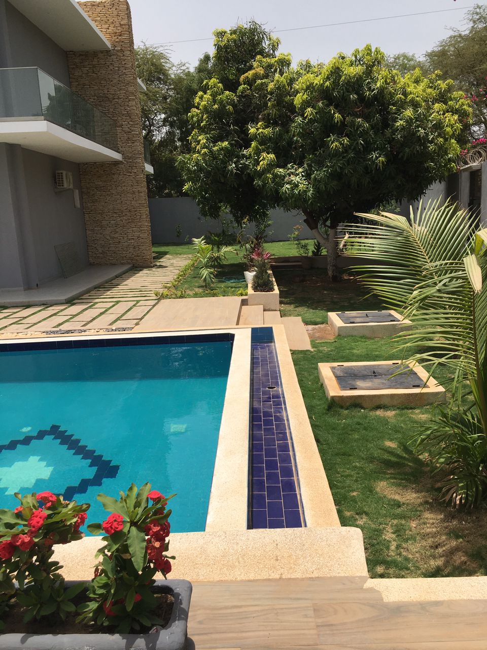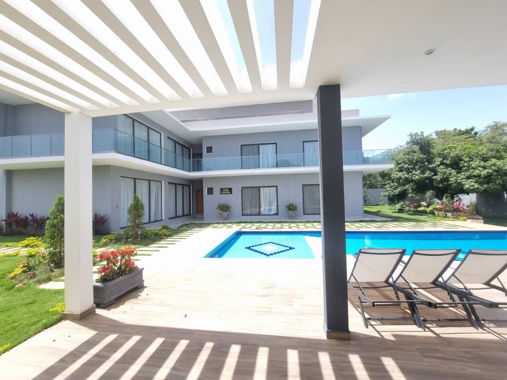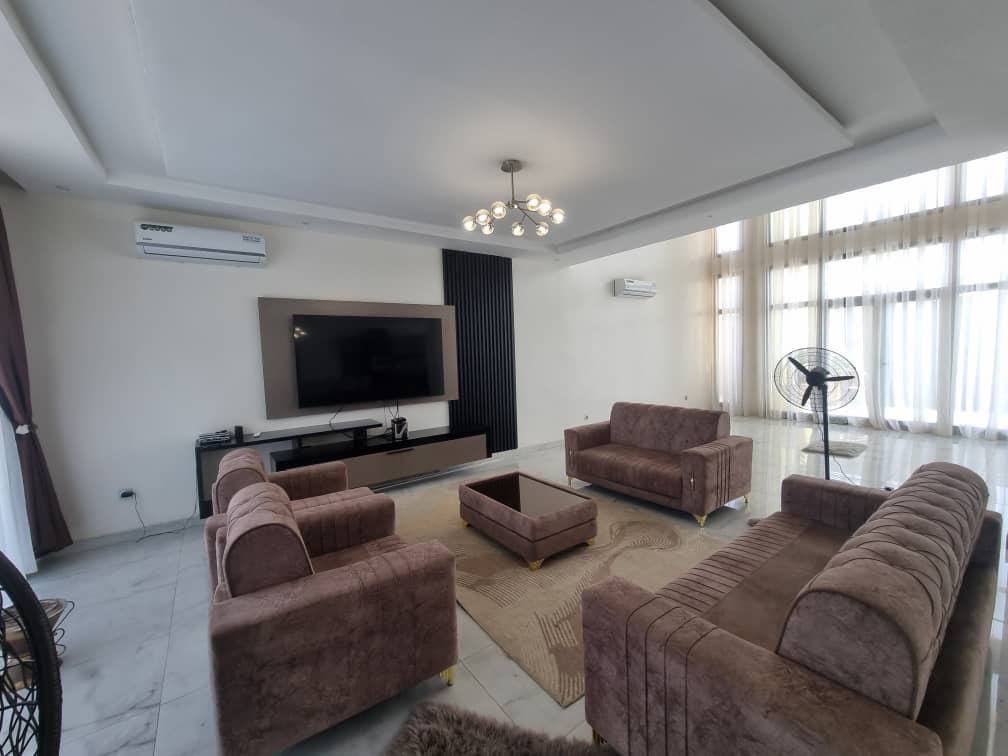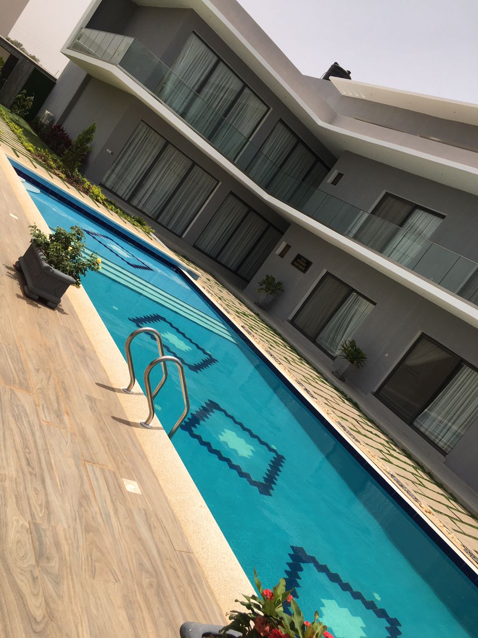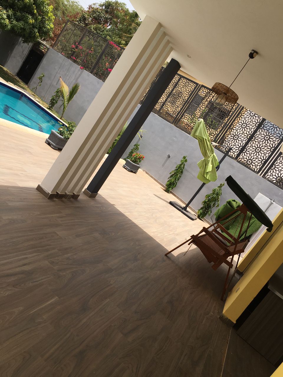Somptueuse villa meublée et climatisée de 1600 m², située dans une zone résidentielle calme et accessible, proche de toutes commodités. Elle comprend 8 chambres avec salles de bain, 2 cuisines américaines, 2 terrasses, une piscine, un grand jardin, espace barbecue et cuisine extérieure.